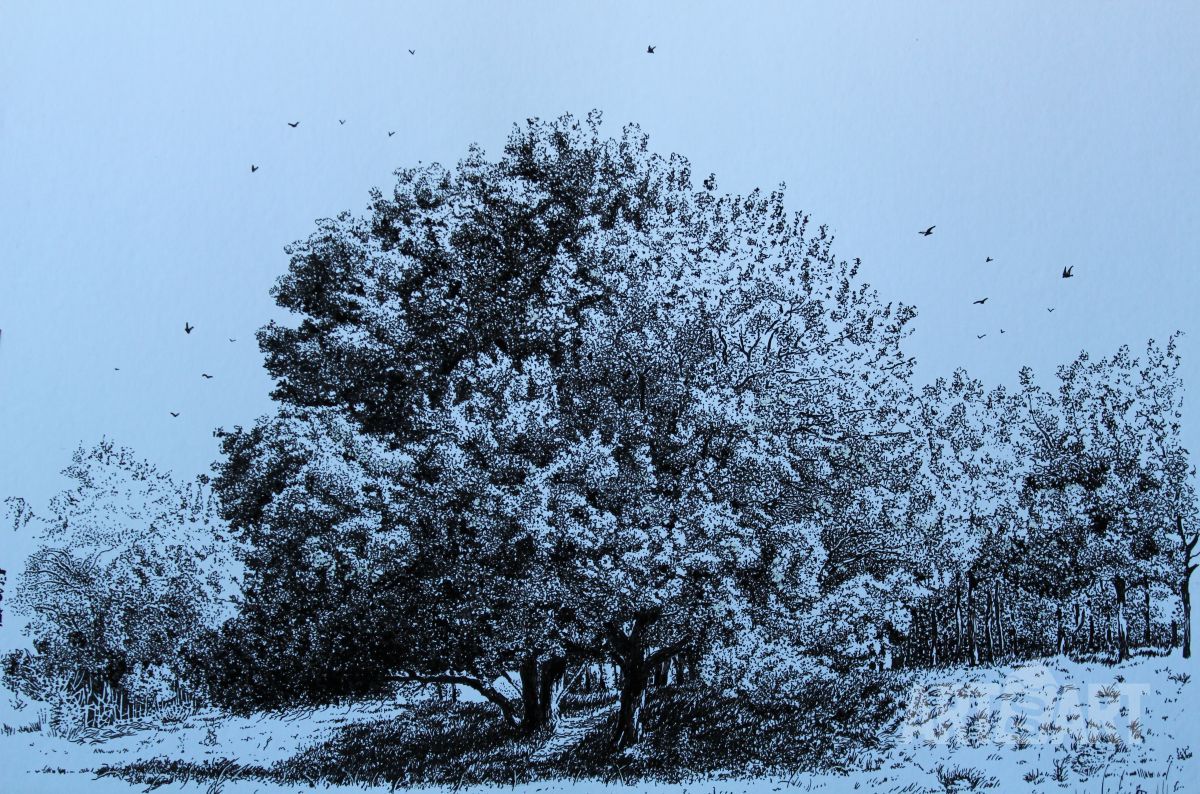 Graphic drawing Landscape at style Expressionism