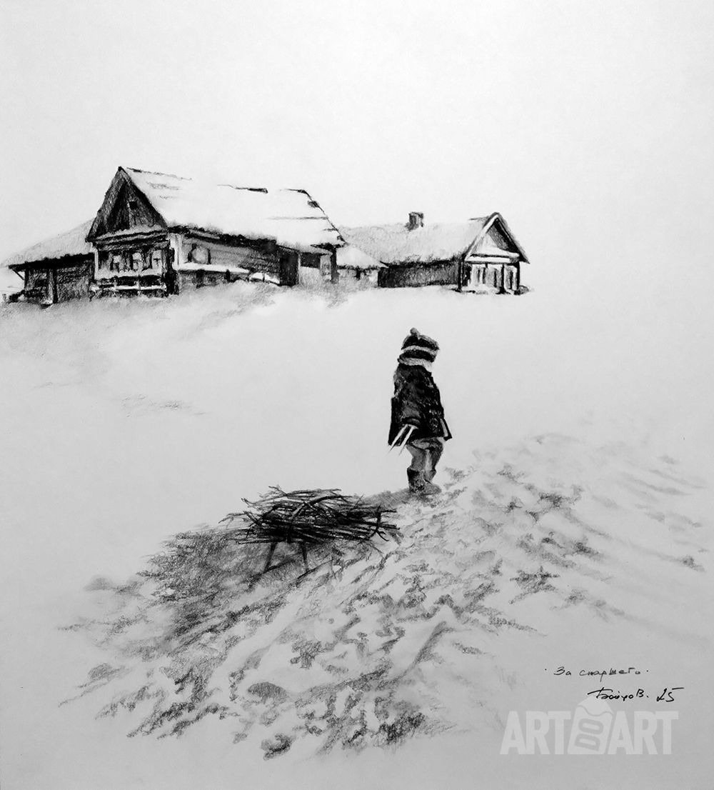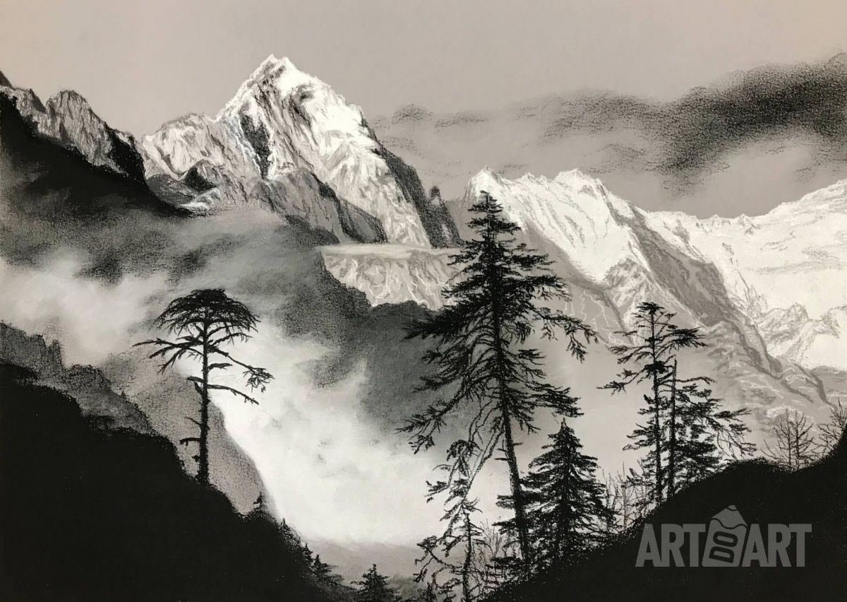 Graphic drawing Charcoal, Landscape