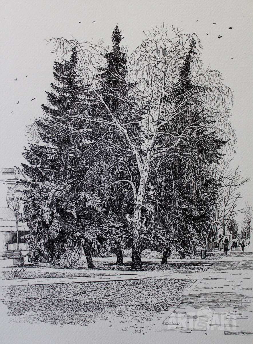 Drawing ink is a special paint made from soot, which can be presented both in liquid form and in concentrated dry form. To paint with ink, artists use a brush or a pen, and the ink color is applied by parallel or cross-hatching method. The main feature of this technique is the high sensitivity of the brush to the slightest pressure on the surface, so one move can change the pattern.