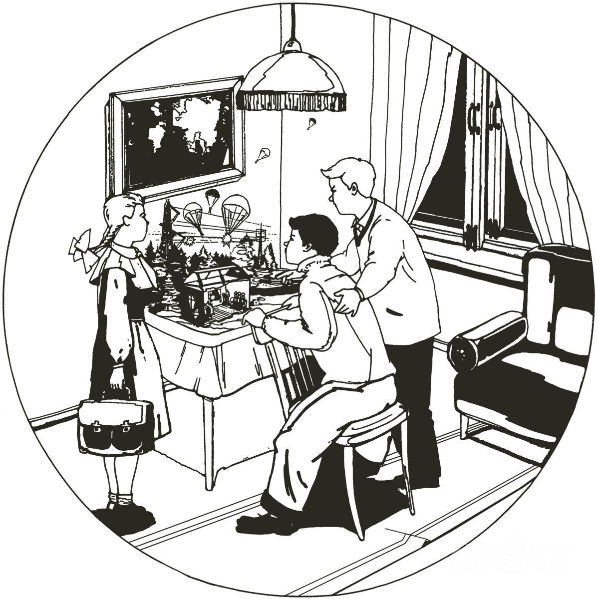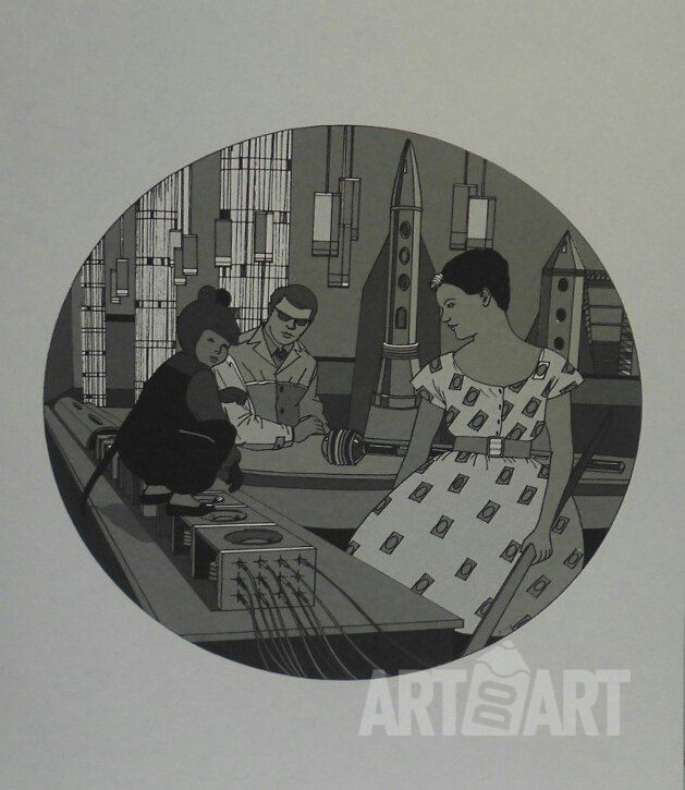 Graphic drawing Print at style Socialist Realism