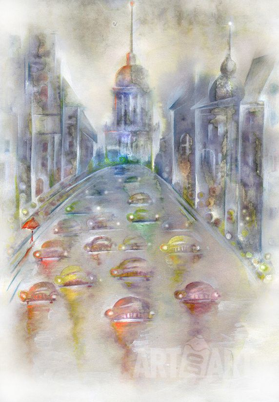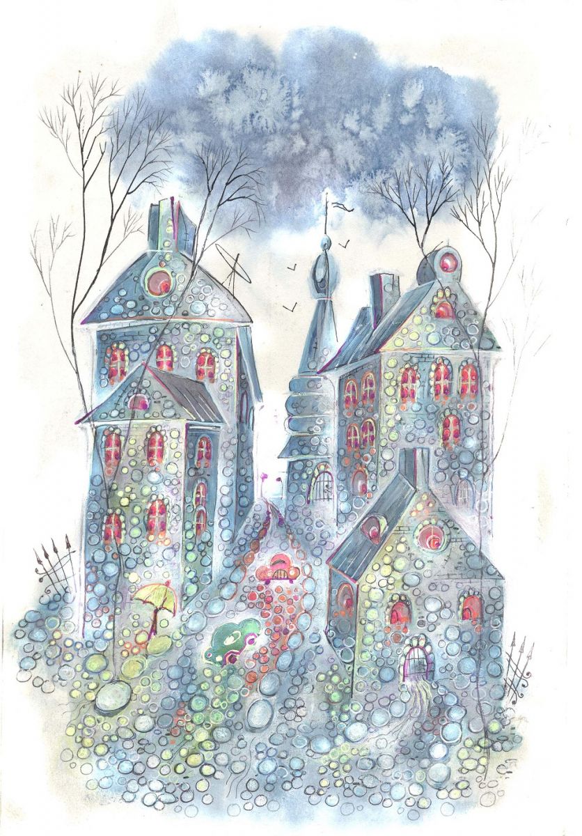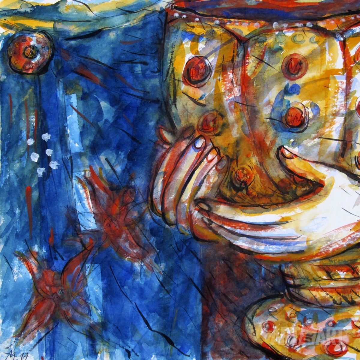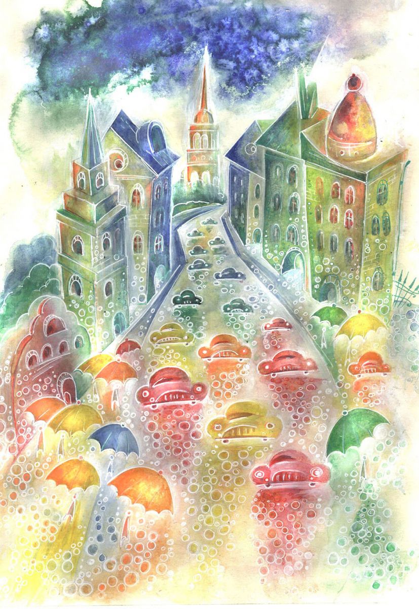Graphic drawing Watercolor at style Expressionism
