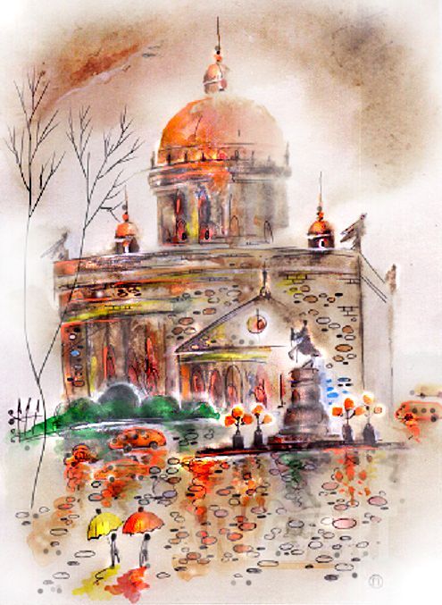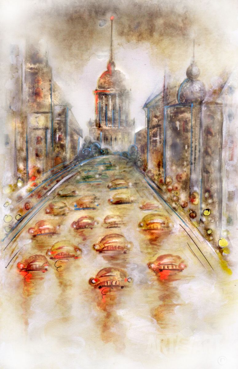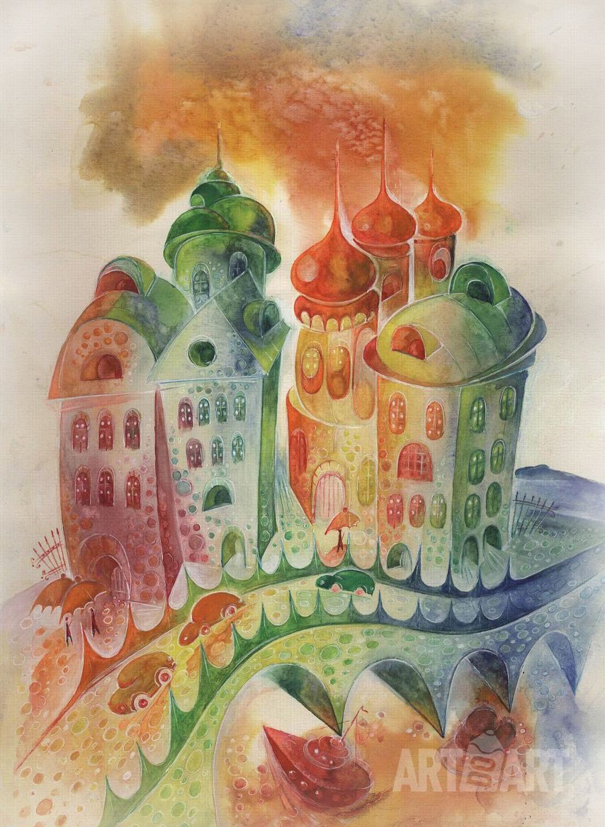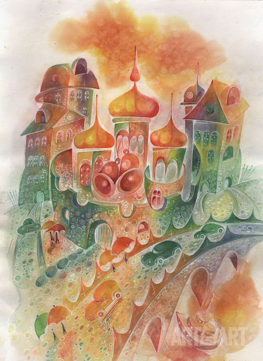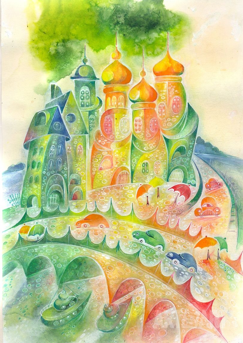 Graphic drawing Watercolor at style Expressionism