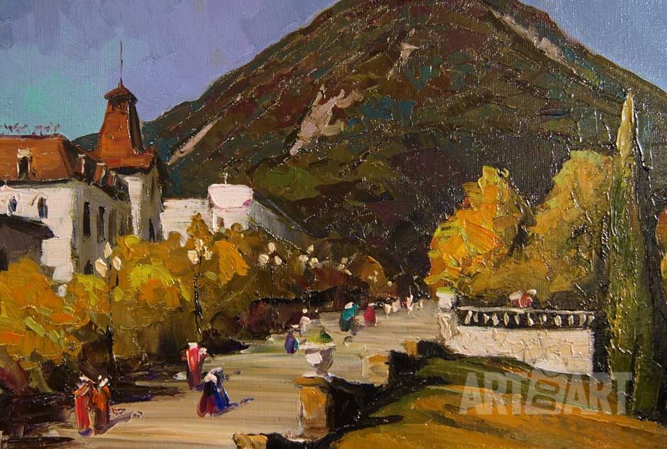 Painting, Realism - THE COURTYARD OF OLD TBILISI