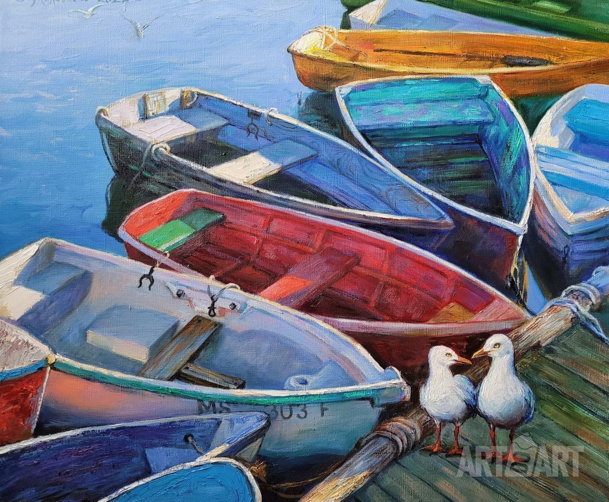 Painting, Seascape - THE RED BOAT. VLADIVOSTOK