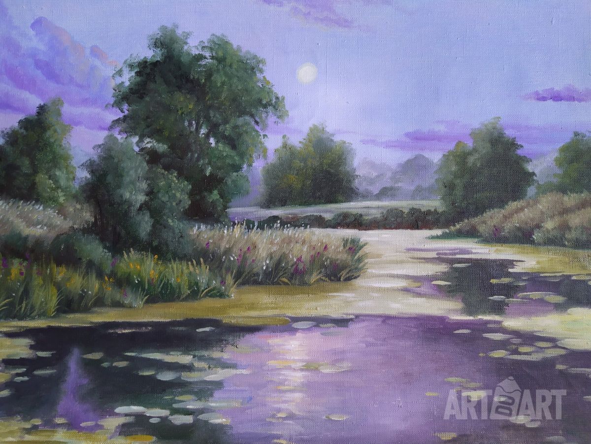 Painting «Sunset on the swamp», 2019, oil on canvas 63*45 cm.