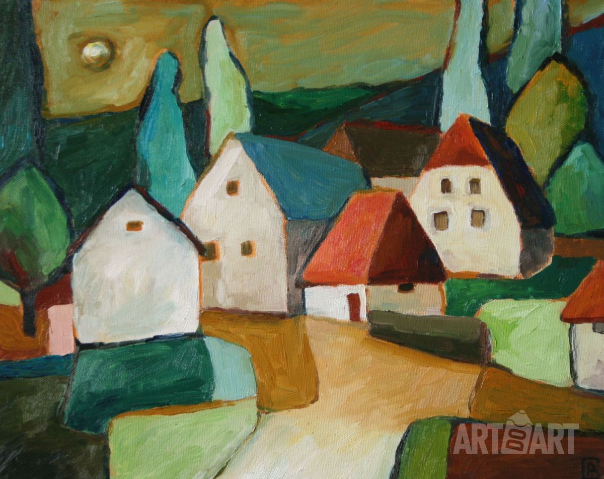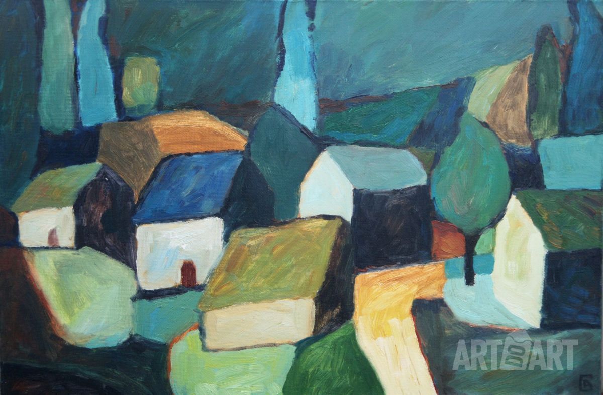 The combination of shades of green formed in this work in a minimalist landscape. Great job for a modern interior!