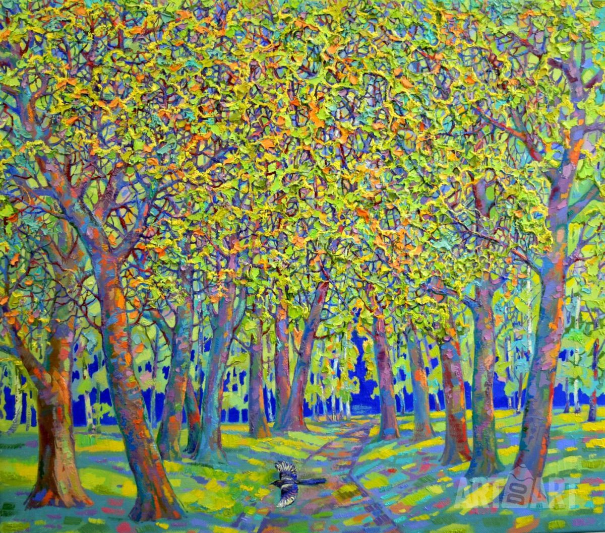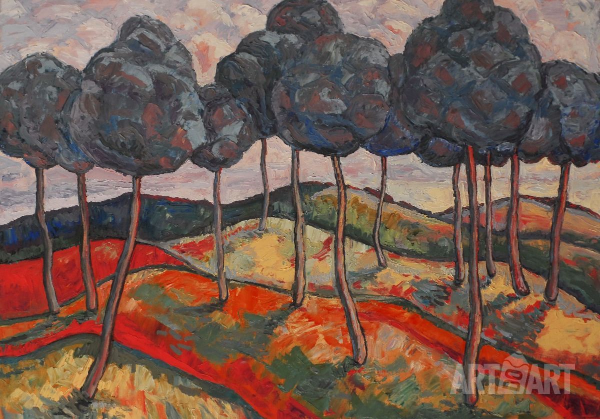 The work is written by expressive brush strokes. One by one the mountain peaks lined up, going deep into the space, divided it into several plans, each with its own shade and richness. These mountain plans create a perspective that is so pleasant to look at.