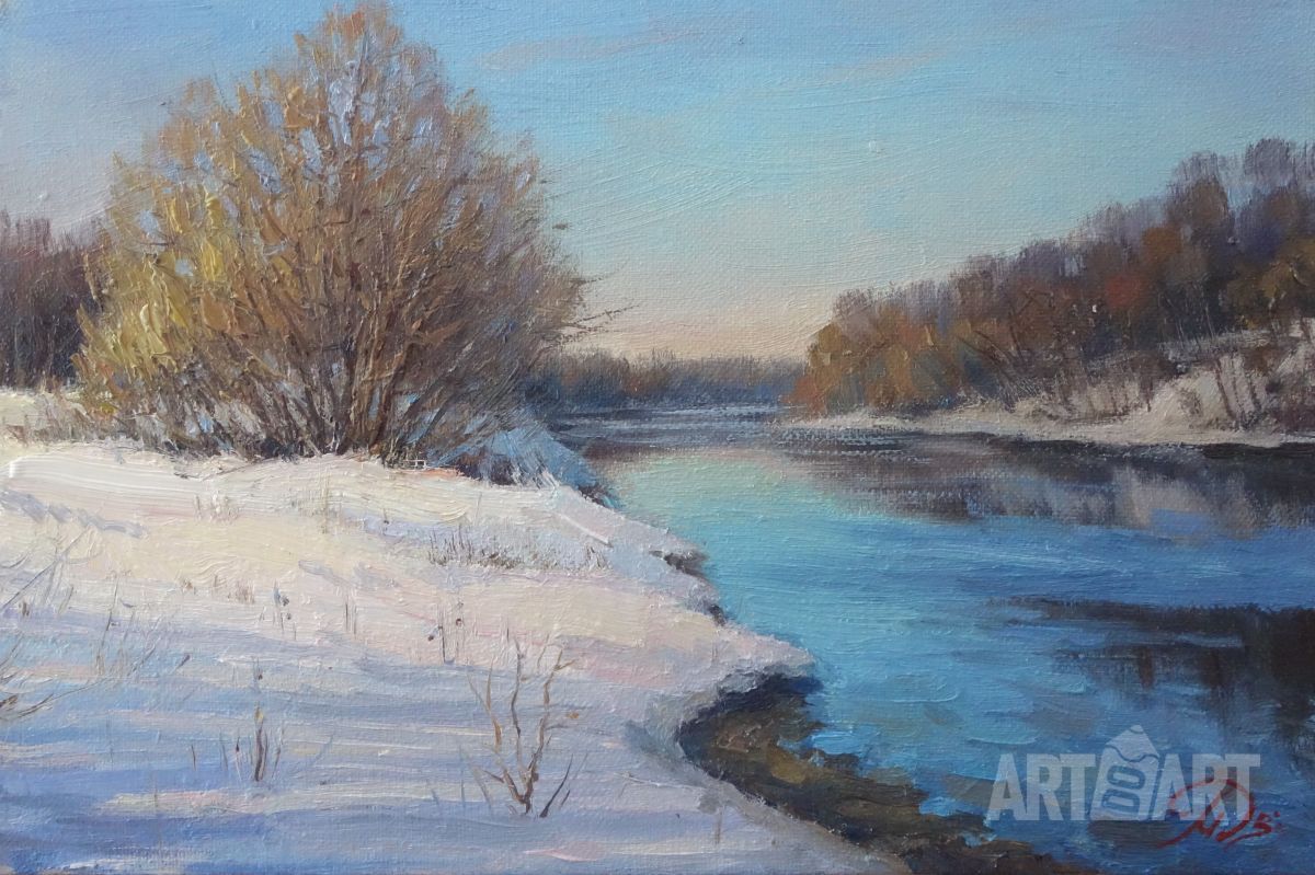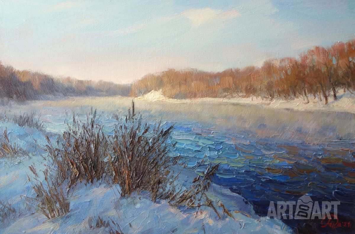 The landscape is made from nature. The January day is frosty and fresh. There is a ringing silence all around. Peace and quiet are everywhere. Sleepy trees rise majestically above the Bank of the Sura river, which slowly carries its waters in the distance.