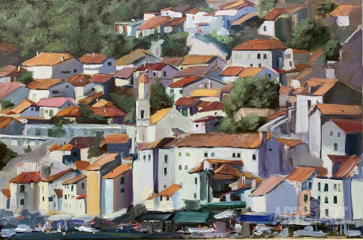 verde - the work is filled with air, made in green colors. Well suited for the interior, where you need a calm, not overloaded with color and plot detail, point. Work does not require clearance.