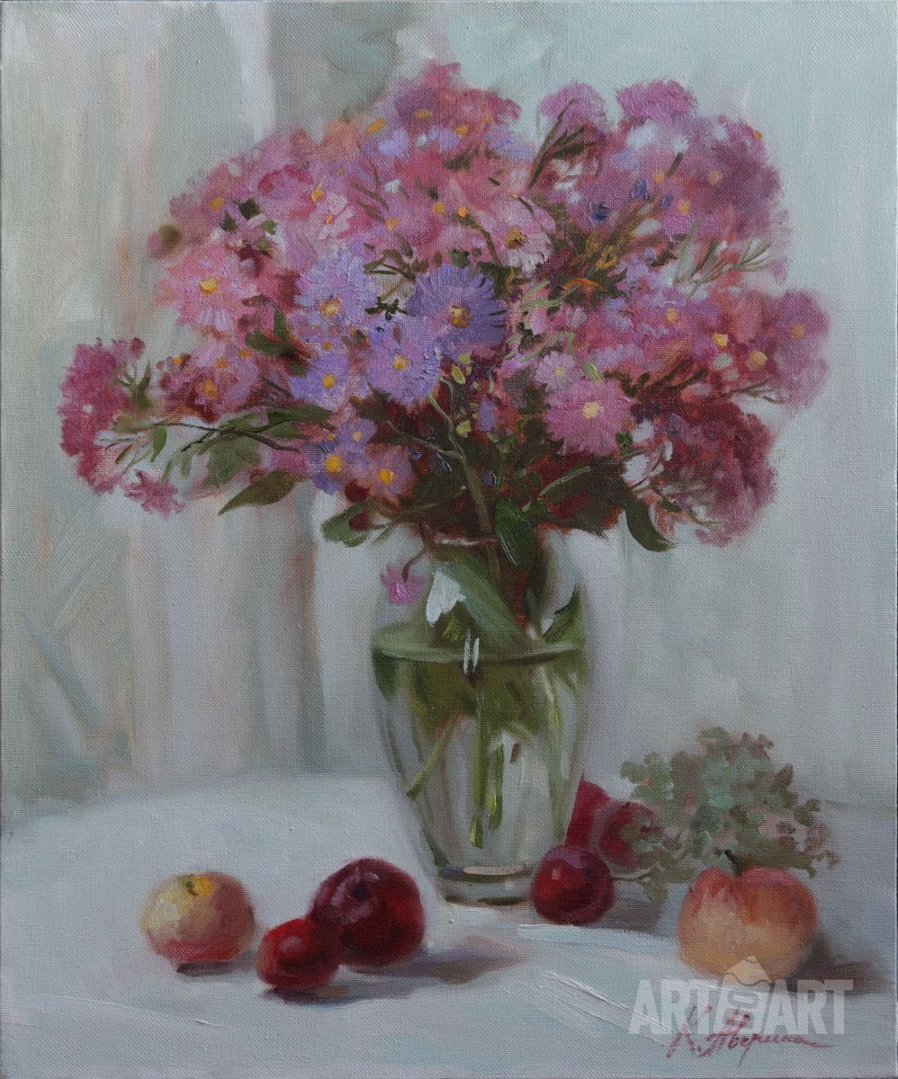 This little still life is painted on canvas. It will look very nice decorated in a wide frame. The plot has a reference to old Dutch still lifes, but in a modern interpretation.