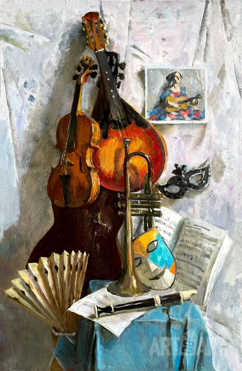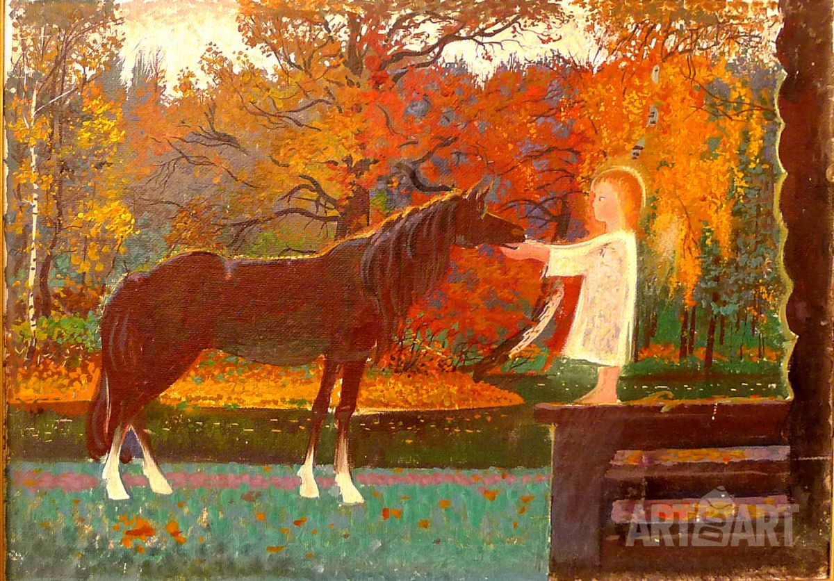 The painting was created in memory of my father. The work is filled with longing and the inevitability of accepting loss. Only a rosy-cheeked child reminds the viewer, as well as me, that life goes on.