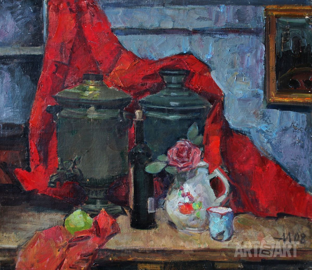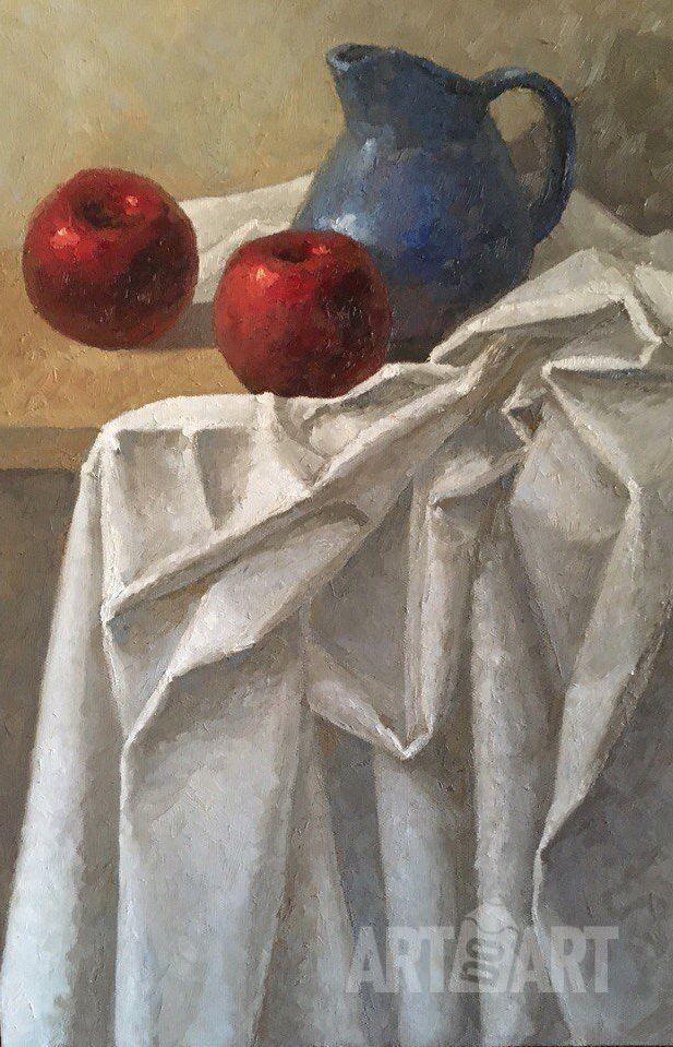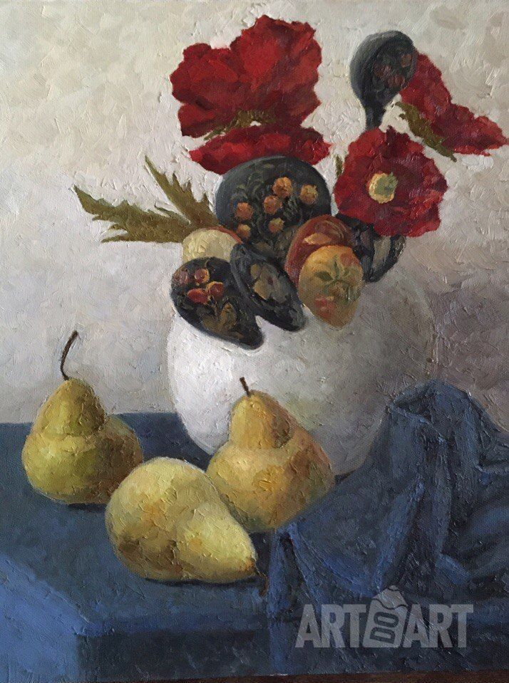 This still life, made in the technique of oil painting on canvas, will be an excellent addition to the interior. The picture attracts attention not only with a juicy color scheme, but also with artistic fullness.