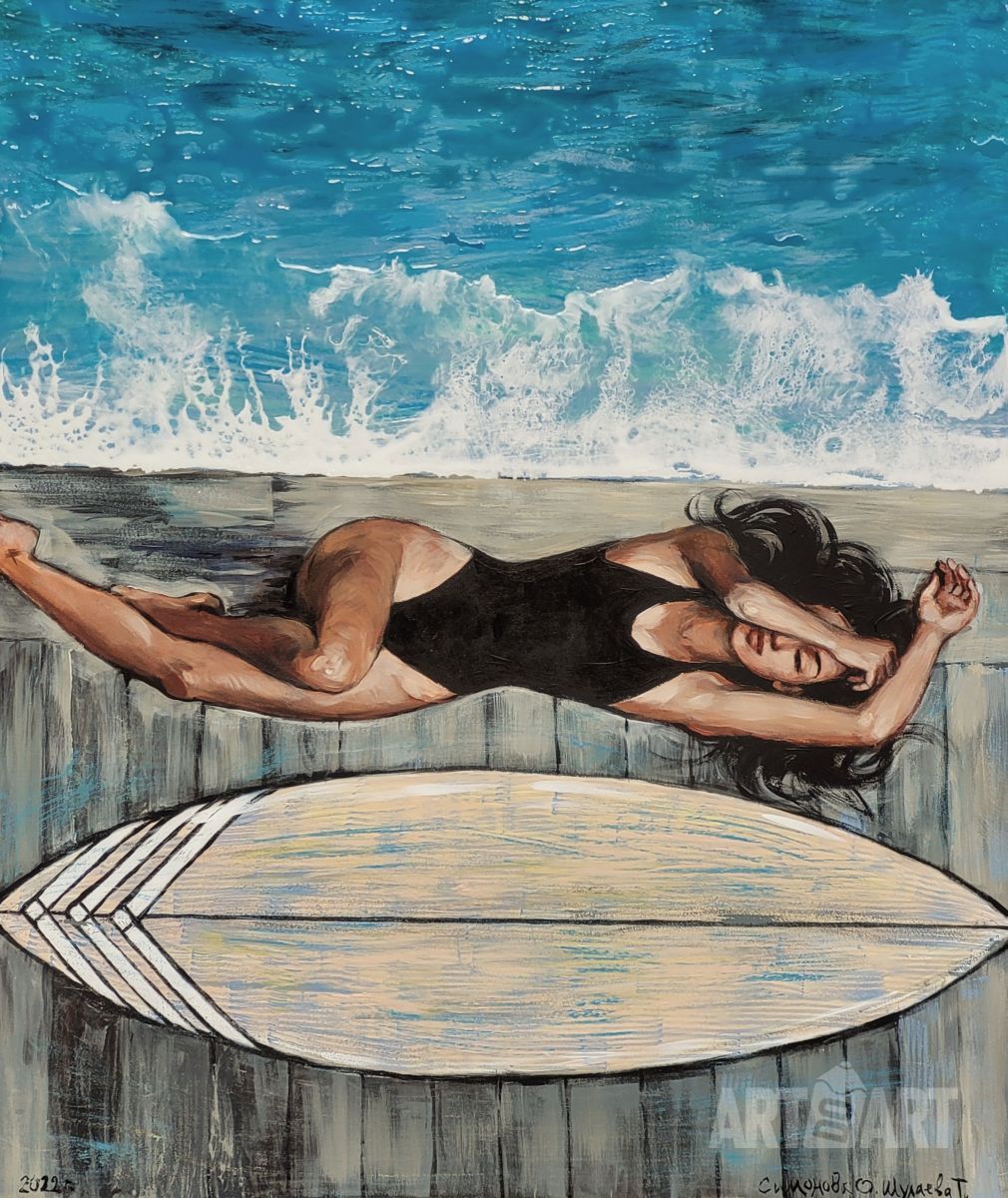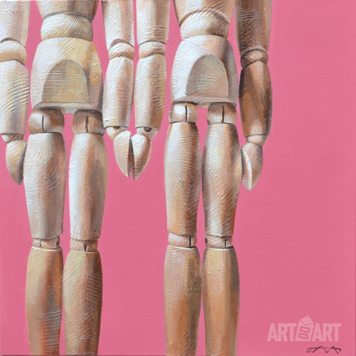 The painting is made with acrylic paints on canvas, using texture paste. The figures themselves have a volume that is created not only by means of painting, but also by texture paste. These volumes do not complement each other, on the contrary, they seem to compete. And yet they continue to live and create one image.