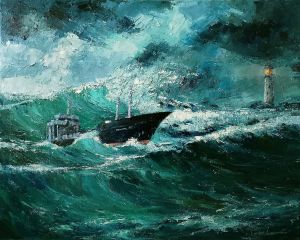 Mistress of the sea. Meeting underwater divers and sharks. Canvas on cardboard 40x50 cm. Oil.
