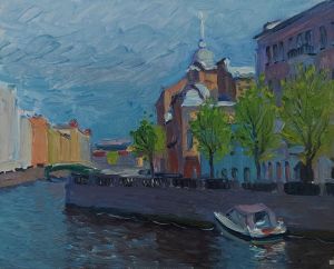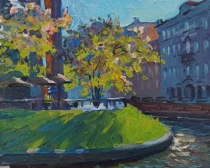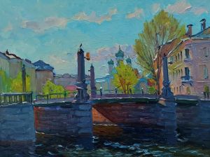 The sun bursts into the open window, its rays play in the glare of the glass, shine on the surface of sea shells and flashes a bright color in the buds of luxurious lilies. The picture is very bright and bright, with a joyful, summer mood.