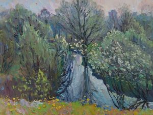 Lush lilac blossoms in St. Isaac's Square in St. Petersburg. The sketch was painted from nature at the end of May 2024