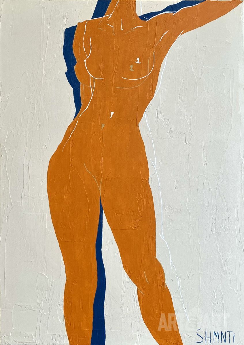 «Blue Girl» from the Silhouettes series is a minimalist and expressive work by artist Shomina Ti, executed in her unique style.