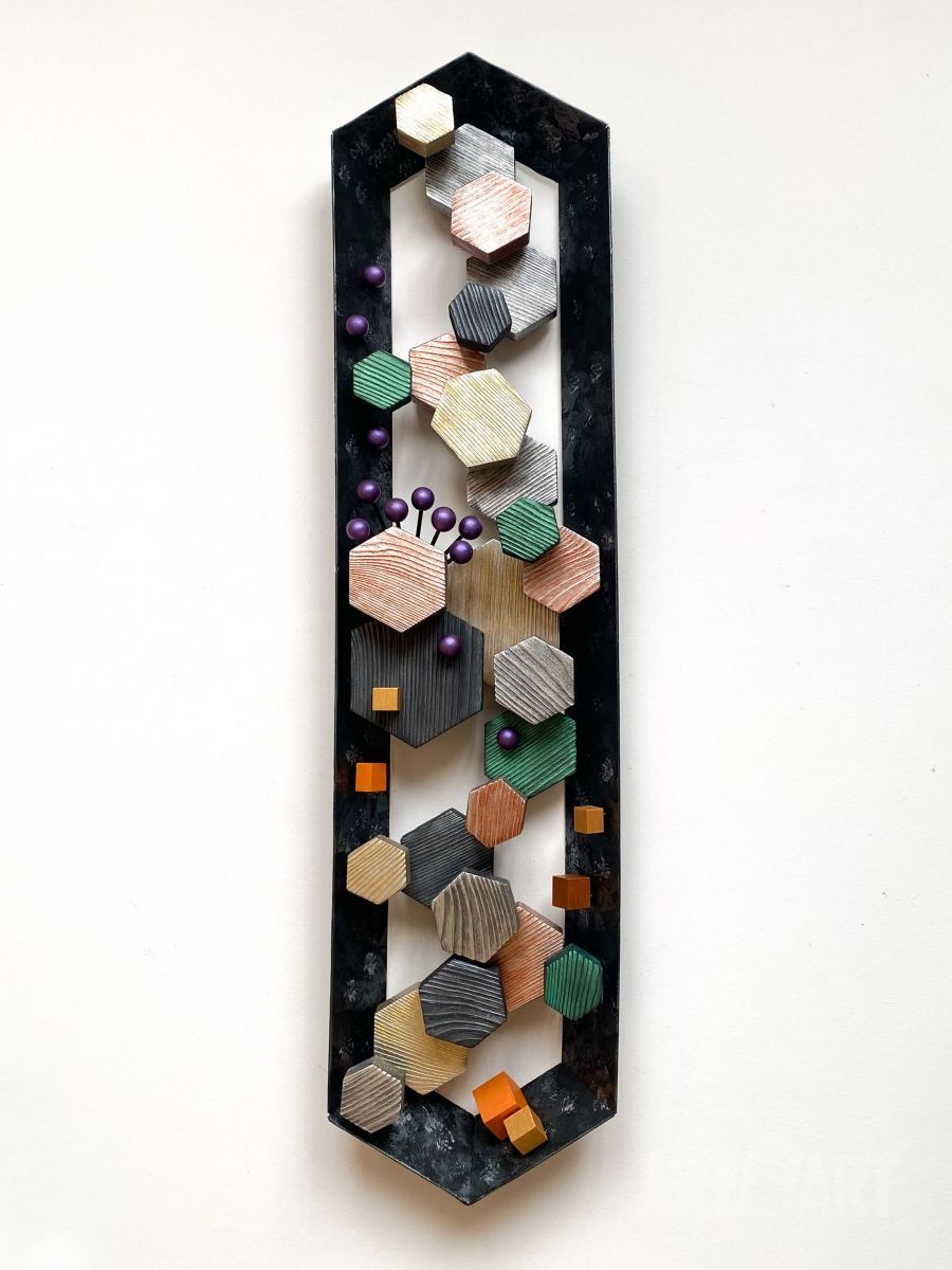This wall artwork tells us about Nature at the atomic level. Atoms can join each other giving their electrons to the nearest atoms, and at the same time attach their electrons in return.