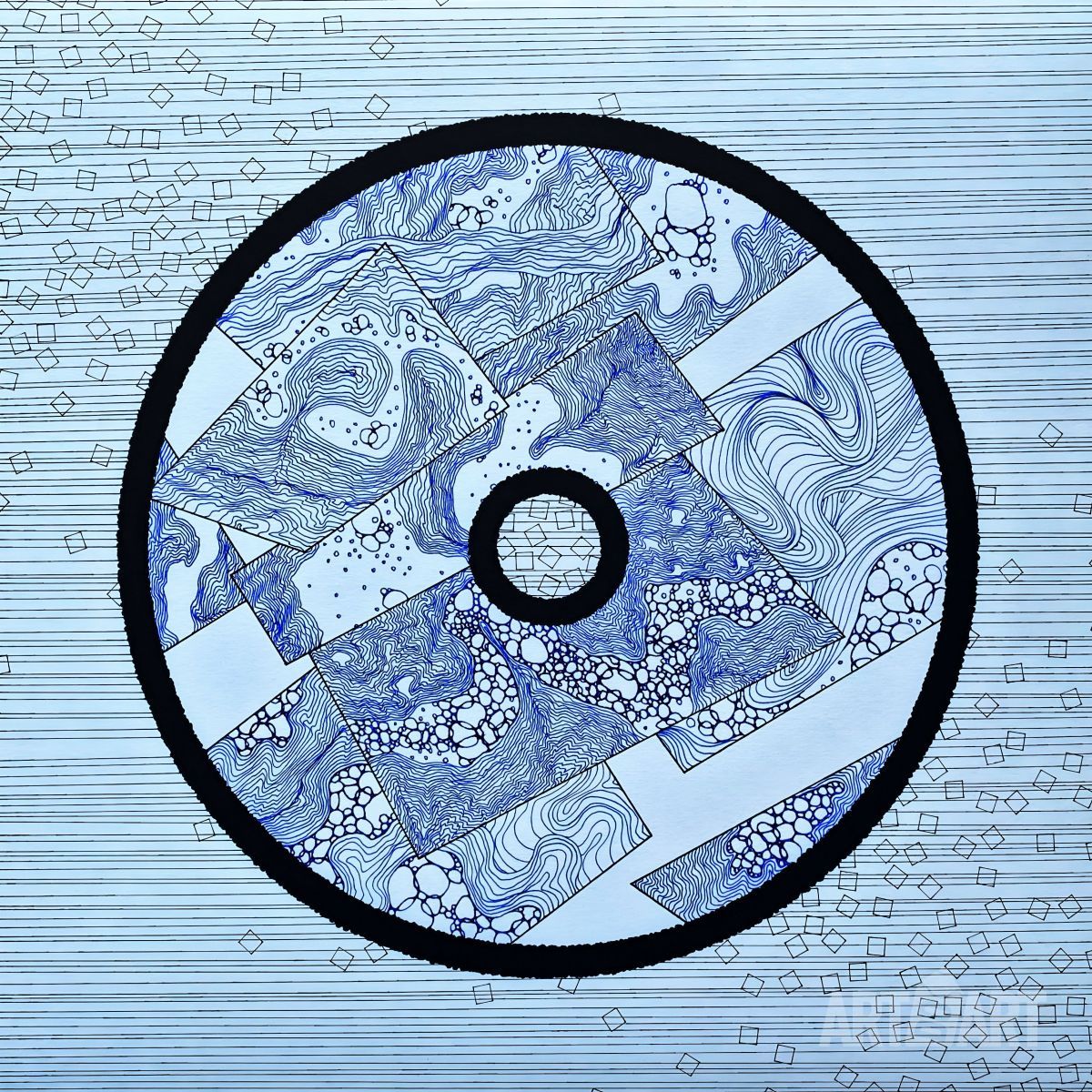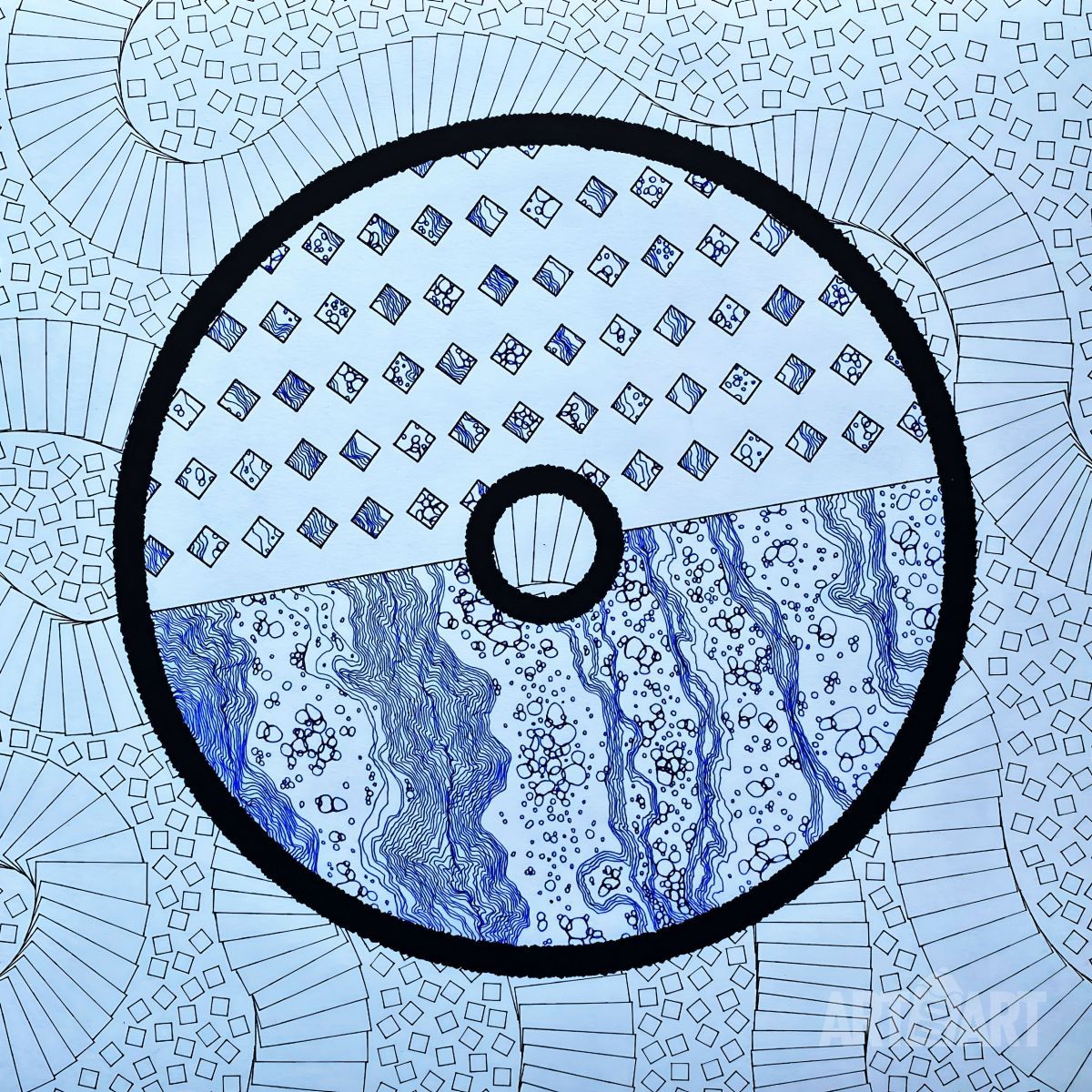 The album includes four graphic works made using the technique of drawing lines and dots exclusively with a liner. The color scheme is restrained, cool, built on shades of white and blue.