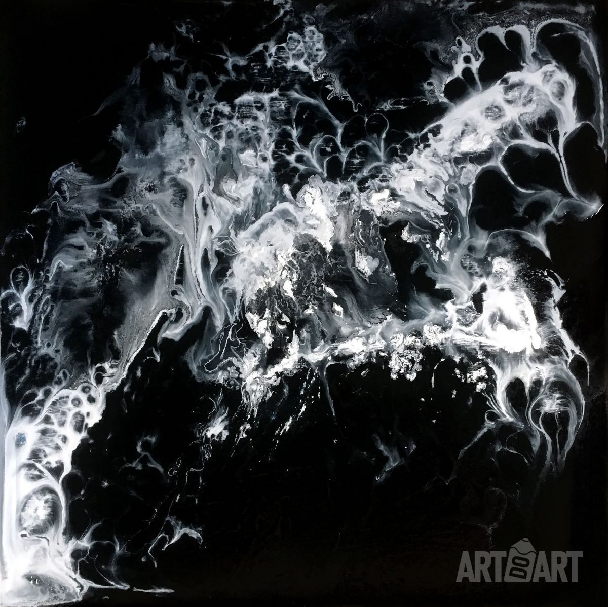 Прежде всего, отмечу контраст цветов и темного фона, картина очень выразительна. У меня она вызывает ассоциации с темной летней ночью. Чувствуется особая атмосфера, которую хотел передать автор.