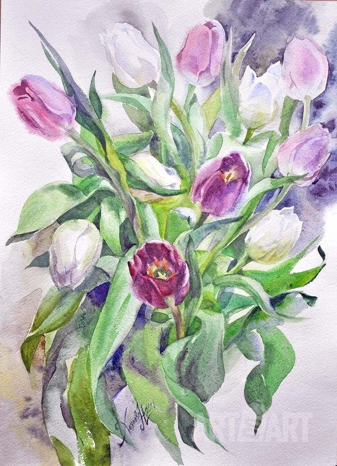 the work is drawn on 100% cotton paper. the color combination of the petals is carefully passed from life. Each visible vein of the flower is drawn. Term of execution of the work within 1-1. 5 months