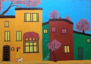 Author's technique. Razor, illuminated specially processed black photo paper all colors are under a black layer of paper by cutting with a razor layers of illuminated specially processed photo paper and reaching the desired color a picture is created
