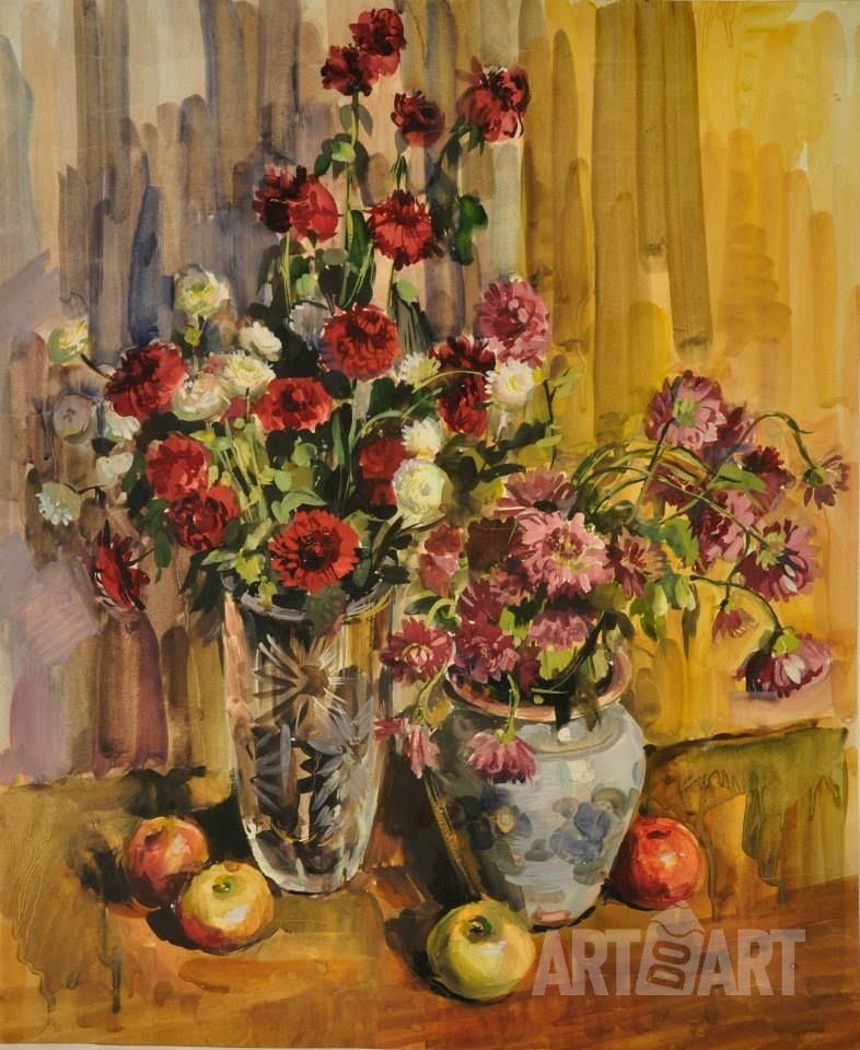 Мне кажется, Наталье, как никому, удается писать красивейшие натюрморты и пейзажи. Одна из моих любимых картин - "Цветы и яблоки".